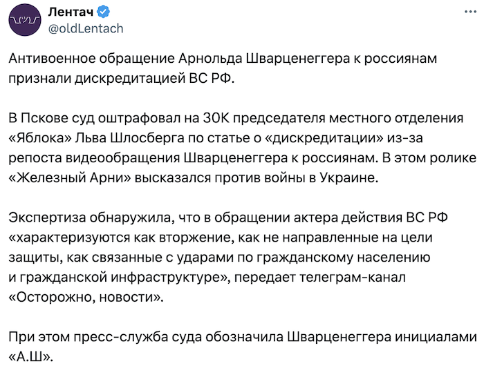 Сейчас политики - в смысле легальных способов борьбы за власть - в РФ безусловно нет. Но так будет не всегда. И Шлосберг, и Яшин, и некоторые другие рассчитывают до этого времени дожить. И вот тогда очень важым станет то, что они говорят сейчас. Именно потому, что «интернет все помнит». Это нужно понимать, оценивая, что они говорят, и не ожидать от них одобрения ударов ВСУ по российским городам или призывов к вооруженному восстанию.