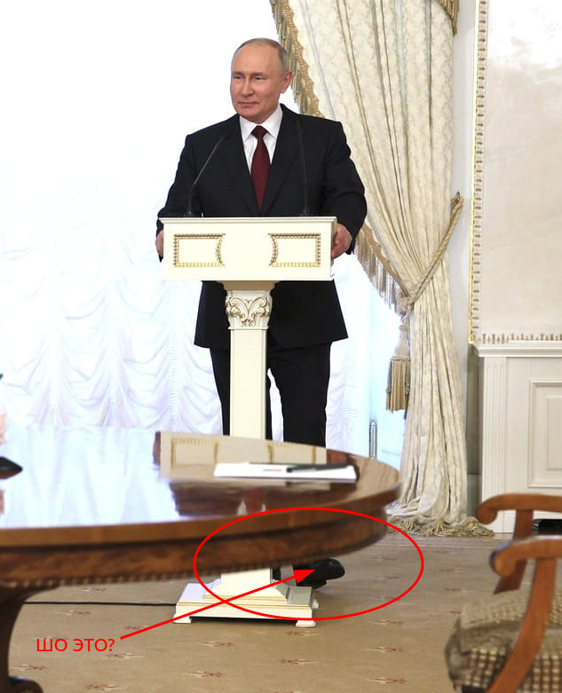 Возможно фотошоп. Стол больно короткий. И трибуна близковато. Вова, как известно, предпочитает общаться на значительной, желательно космической, дистанции.