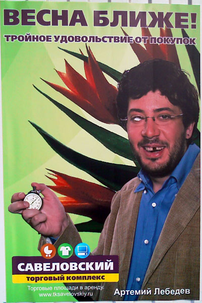sherem: Ну я предположил, что недобросовестные рекламодатели савёлы, сделали такой плакат без спроса Лебедева, пустили в тираж, расклеили, а там, будь, что будет... понадеялись на рекламный эффект, пока не заставят снять...