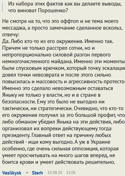 Впрочем, не исключено, что чего-то было. Просто, может очень удобно оказаться, что в Украине все пойдёт по принципу "друзьям все, остальным закон". Путин тоже так начинал...