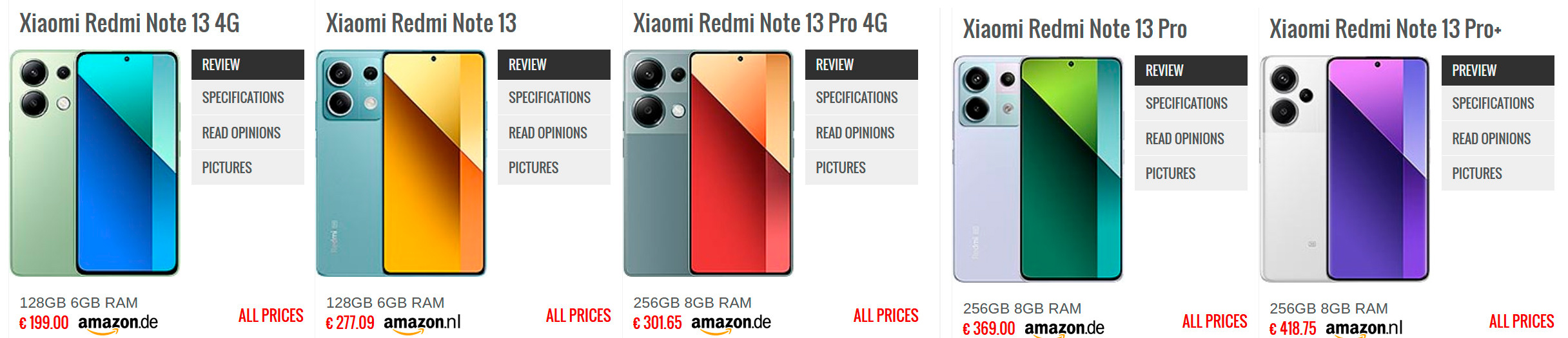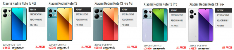 Цены на испанском сайте для Note 13 4G - €254, для Note 13 Pro 5G - €370.