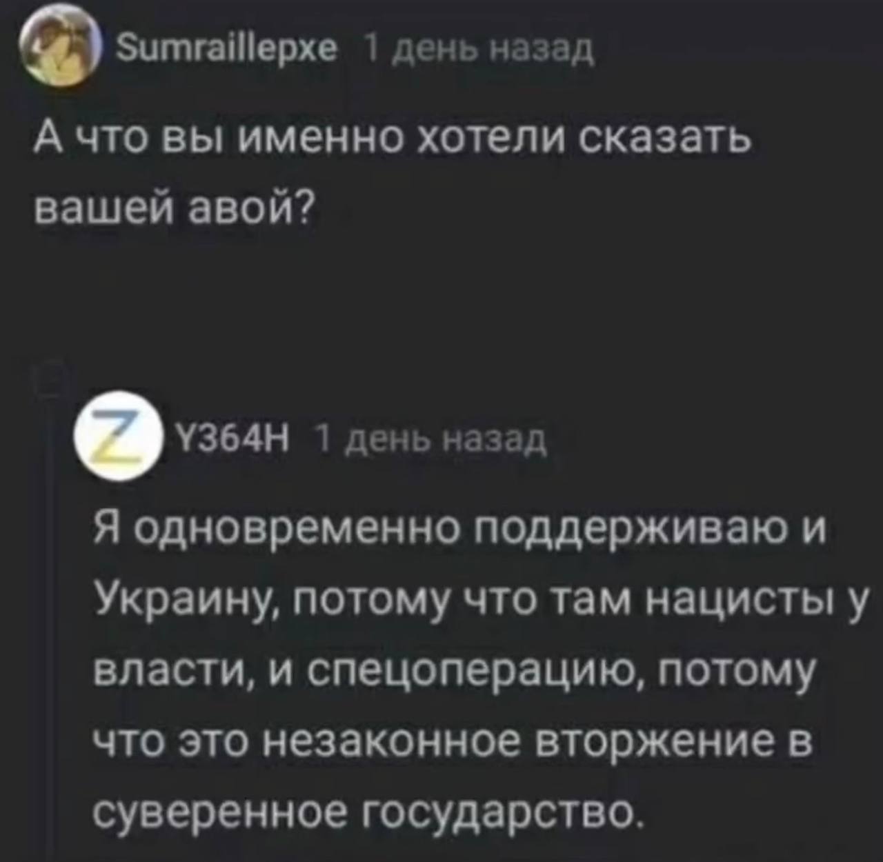 Иначе вы этаким своим тупым шариковским макаром "засудите" вообще чуть ли не практически всех крымчан и донбассцев поголовно. Вы этого хотите?