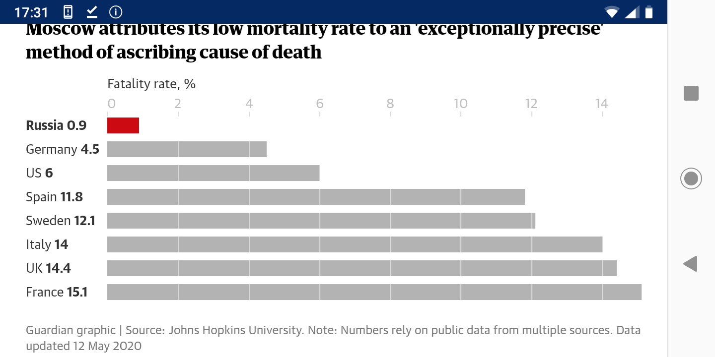 Для понимания: я НЕ УТВЕРЖДАЮ, что в РФ не корректируют статистику. Я хочу увидеть понятные и достоверные факты, этой коррекции, кроме того, я вижу, что по другим странам данные настолько различаются, что обвинения РФ в подделке статистики выглядят притянутыми за уши.