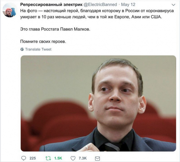 А вот статистику смертей лучше подрихтовать, это уж слишком. Народ тупо не поймёт, как это в энергетической сверхдержаве с лучшим в мире лидером, самой передовой медициной и сверхзвуковыми вундервалями – и вдруг такое количество смертей. Забеспокоятся, сложат два и два, вспомнят о впустую проваленных вождём карантинных мерах. Осерчают. Опасненько...