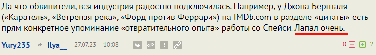 Про то, что он видел, как Спейси кого-то другого лапает, я не писал. «He really rubbed me the wrong way» - вот я про что.