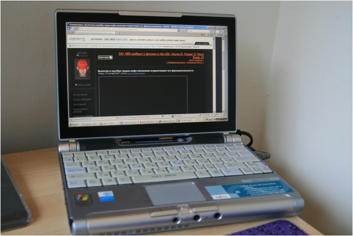 На фото Fujitsu LifeBook P5120, 2004 года рождения. Виден традиционный для их тогдашних компактных серий выхлоп спереди (и не видный входной: выше клавиатуры под экраном).