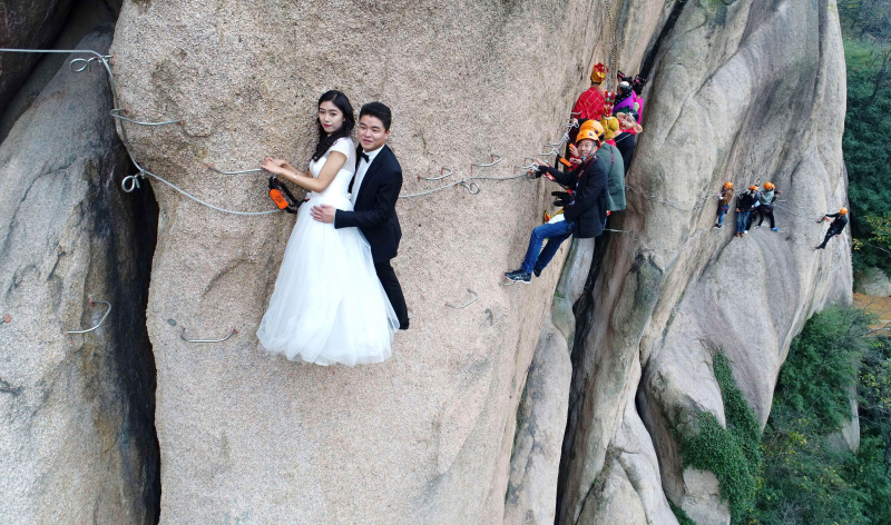 У новобрачных очень спокойный вид. Похоже, им без страховки на Эль Капитана залезть - как нефиг делать.