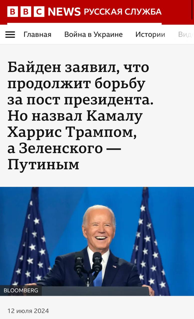 Он был заторможенный и в демедж-контрольном интервью для ABC, и на прессухе. При этом состояние Байдена в интервью назвали energized, а на прессухе претензии были только к оговоркам. Т.е., даже эта стариковская медлительность считается лучше его номинального состояния. На 4 года Байдена точно не хватит.