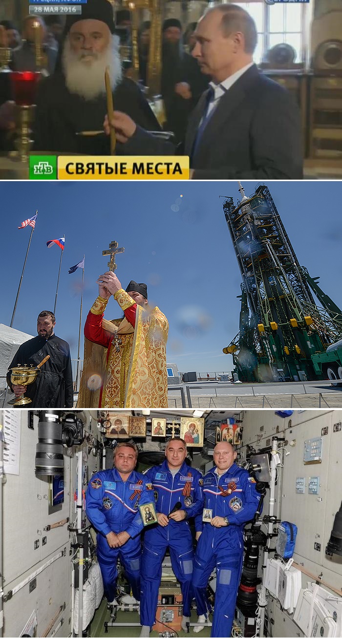 Да-да, а паломничества Путина по святой горе Афон, церковные ритуалы на космодромах и космонавты в иконах, как козы в репейниках - это от большого прагматизма и скептицизма.