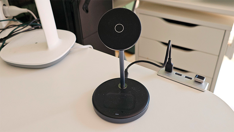 Данная мне нравится тем, что ее также удобно использовать в качестве подставки для видеоконференций со смартфона, ведь смартфон можно примагничивать хоть вертикально, хоть горизонтально.