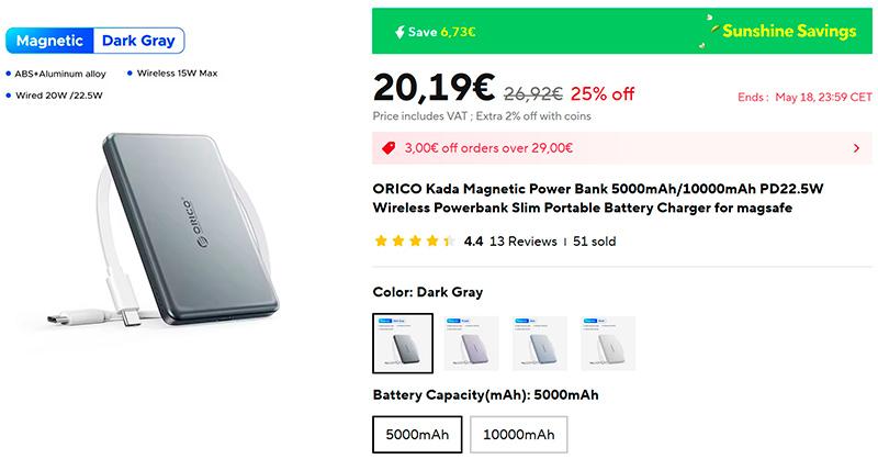 Они есть у Ugreen на 5000 и на 10000 мАч с поддержкой мощности 15 Вт (есть и на 35 Вт, но дороже).