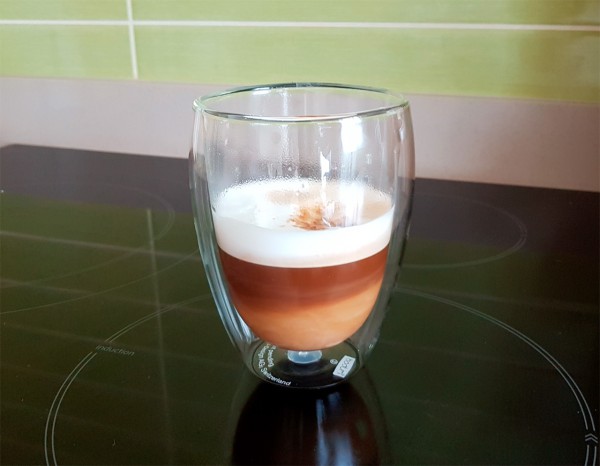 Входящие в набор стаканы оказались очень интересной конструкции: там один стакан как бы вставлен внутри другого стакана, из-чего налитый в сосуд капучино смотрится очень эффектно. А уж как пьется...