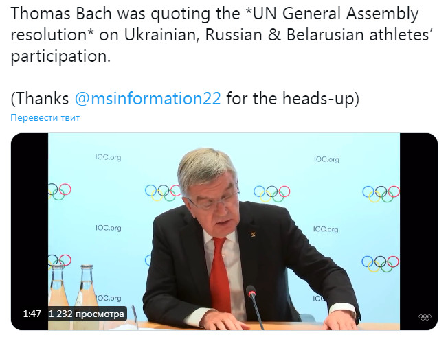 Бах на пресс-конференции МОК по итогам исполкома организации в Лозанне вновь говорил немало противоречивых вещей. Снова он отмечал, что на самом деле заботится о российских и белорусских спортсменах, отстраняя их от международных соревнований. Однако одну громкую сенсацию Томас все-таки выдал.