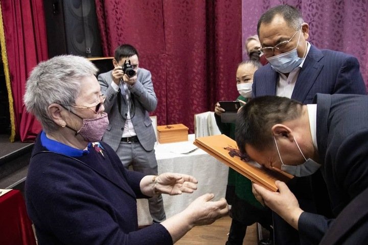Книга написана на трёх языках: тувинском, русском, английском. Я хочу, чтобы каждый ребёнок знал чисто тувинский, русский, чтобы в каждом, даже отдалённом районе, в школах изучали английский, это сейчас надо знать. Мне три района заказали книжки. Вот в одном взяли 22 книги. Я буду всем школам дарить эту сказку».