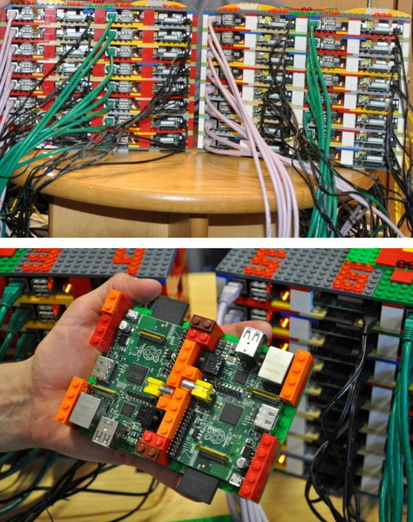И что-то мне это напоминало. А-а-а-а-а, вспомнил. Был же знаменитый суперкомпьютер, который профессор университета Саутгемптона Саймон Кокс собрал из 64 "малинок", то есть одноплатных компьютеров Raspberry Pi, и конструктора Lego. Вот здесь об этом можно почитать (англ.).