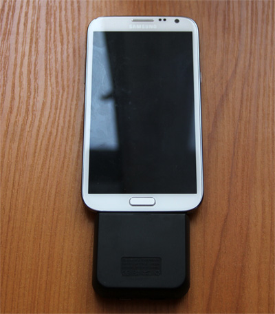 Ее очень хорошо использовать для смартфонов, у которых гнездо зарядки - снизу. Вот так она выглядит с Galaxy Note II.