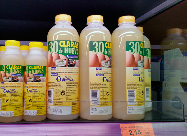 Claras de huevos -- это не просто яйца, а яичные белки. Видимо, виновата мифология о холестерине в пище (в яйце он в основном в желтке).