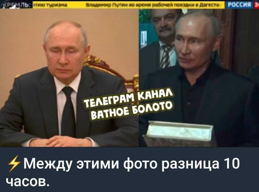 Ну и последнее: а не все ли равно двойник ли это, тройник?.. Помер ли оригинал, жырует ли чорный путин в то время, когда белый в застенках - абсолютно наплевать. С таким же успехом это мог бы быть сгенеренный образ для телевизора - российский атоммарный народец находится сейчас в таком состоянии, что станет верить всему, что доносится из телевизора. Даже если тезисы будут противоречить сами себе раз в полминуты. Особенно "если".