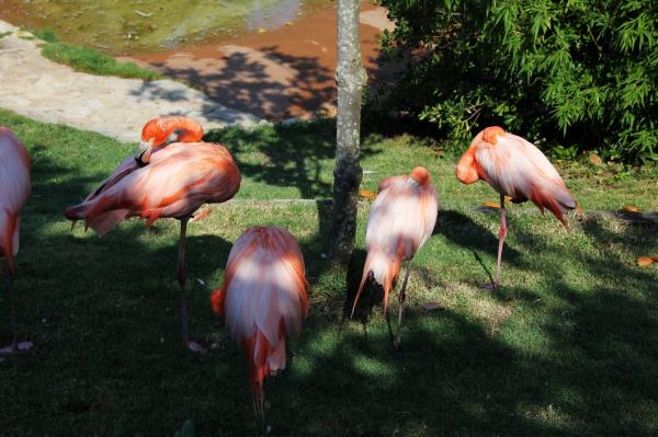 Прям недалеко от входа - безразличные ко всему мирскому розовые фламинго.