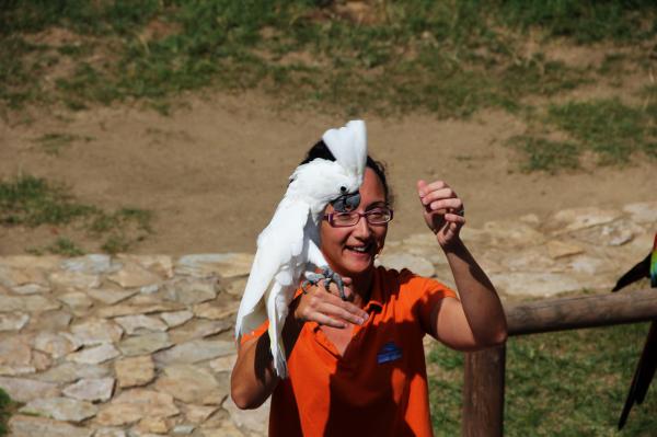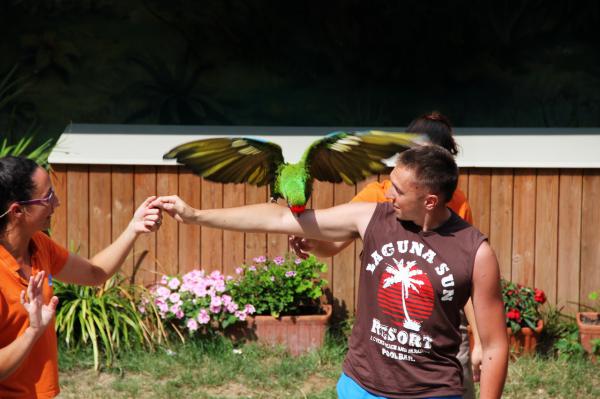 Один попугайчик работал истребителем - пролетал над залом и подхватывал брошенную в воздух еду. Смотрелось эффектно, я это даже на видео заснял.