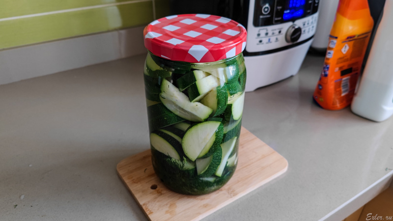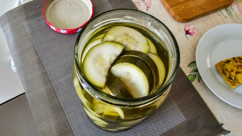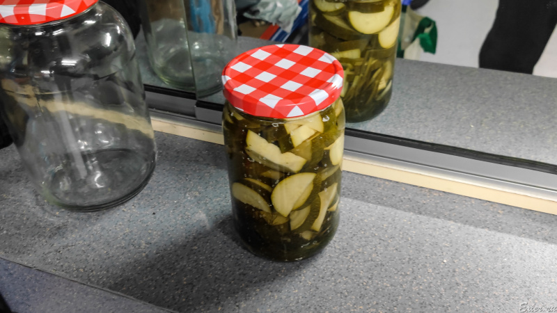 В какой-то момент мы решили научиться готовить маринованные кабачки - ну, захотелось нам. Мы попробовали несколько рецептов маринованных кабачков быстрого приготовления - не понравилось. Также попробовали несколько рецептов обычного маринования с последующим выдерживанием кабачков в течение двух недель, ну и в результате остановились на вот таком рецепте.
