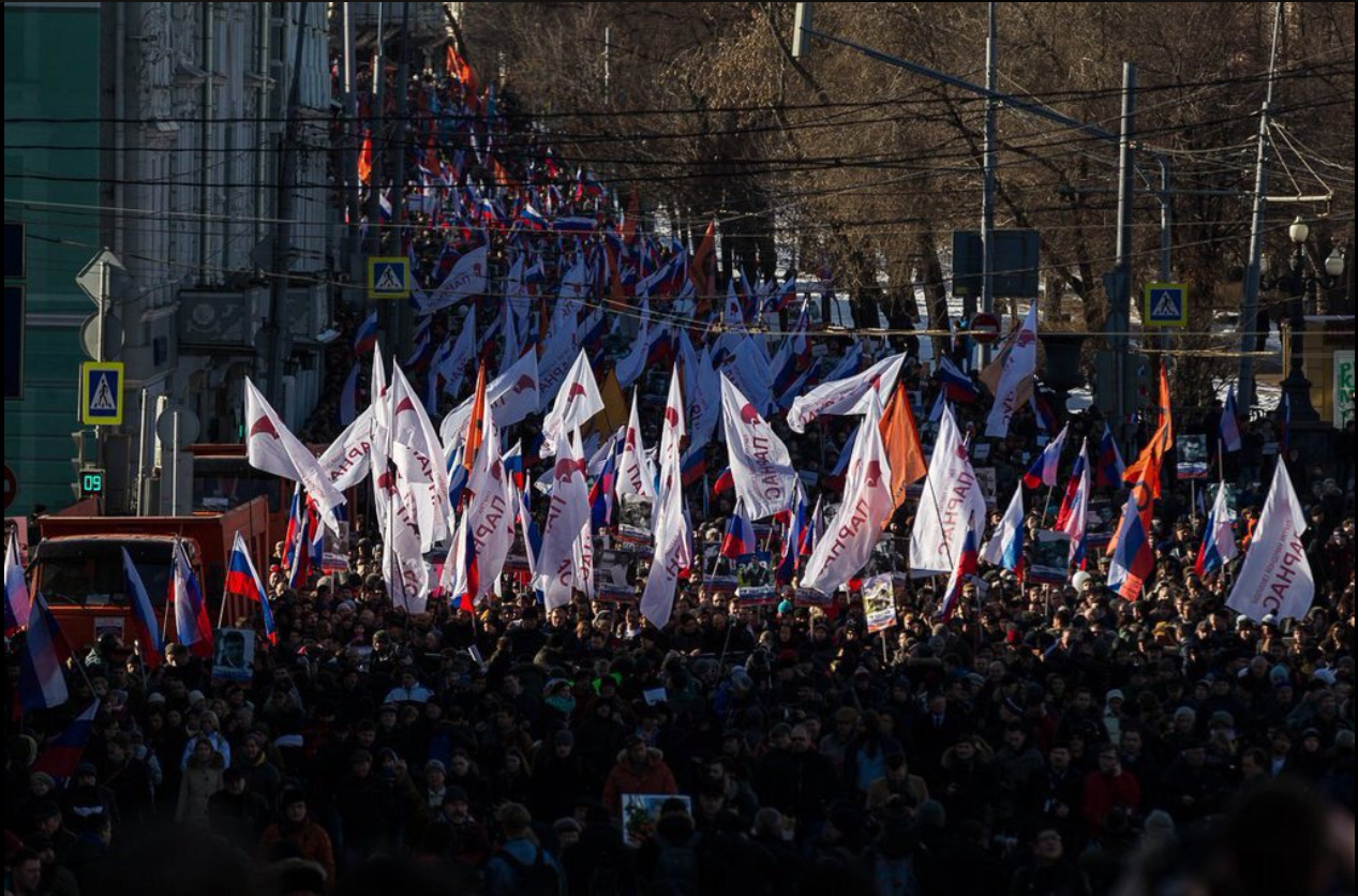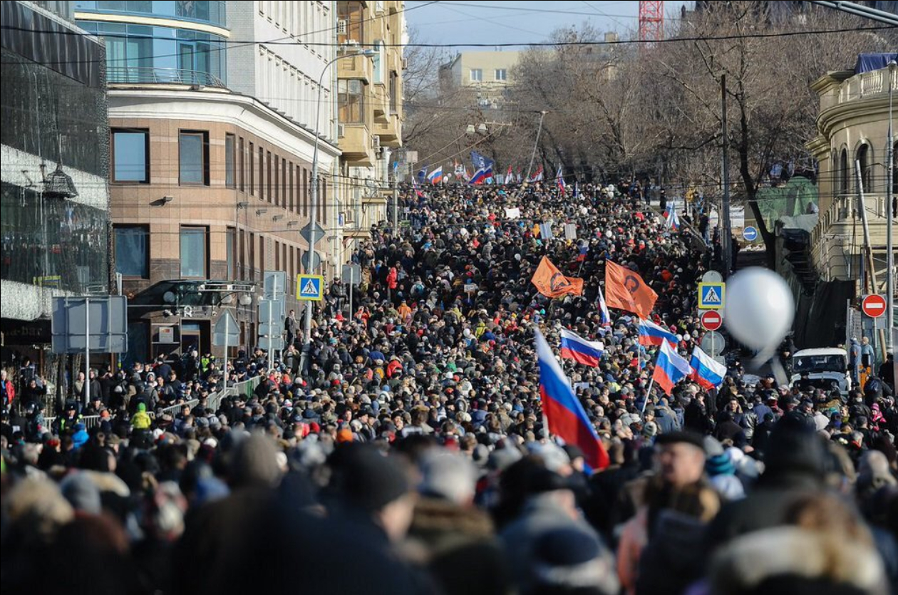 По данным организации «Белый счетчик» на 14:45 на марш памяти Бориса Немцова пришло более 24 тысяч человек. Полиция же заявляет о 7,5 тысячах.