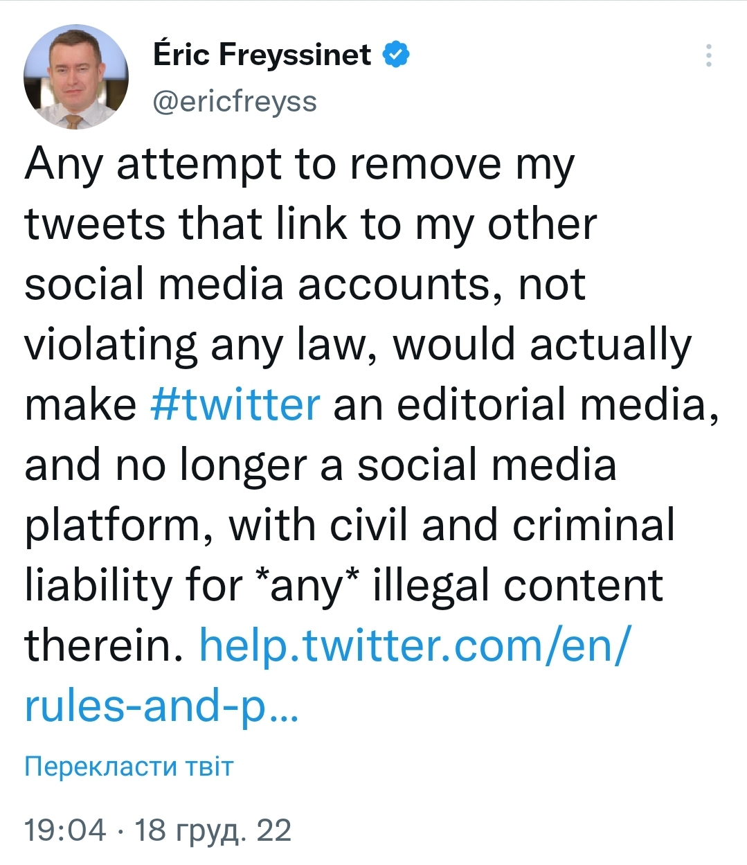 В общем, священная борьба Маска за свободу слова в Twitter продолжается.