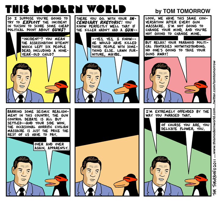 У газетчика ствол, у пирожника ствол, у доставщика пиццы ствол... Думаю, вы уже поняли экстраполяцию. В общем, доводите до абсурда.