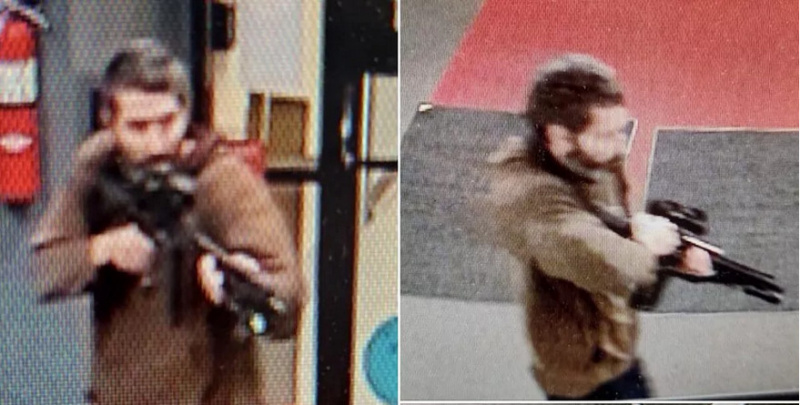 Офис шерифа округа Андроскоггин разместил на своей странице в Facebook изображения подозреваемого, на которых изображен стрелок, входящий в заведение с оружием на плече: "Подозреваемый для опознания".