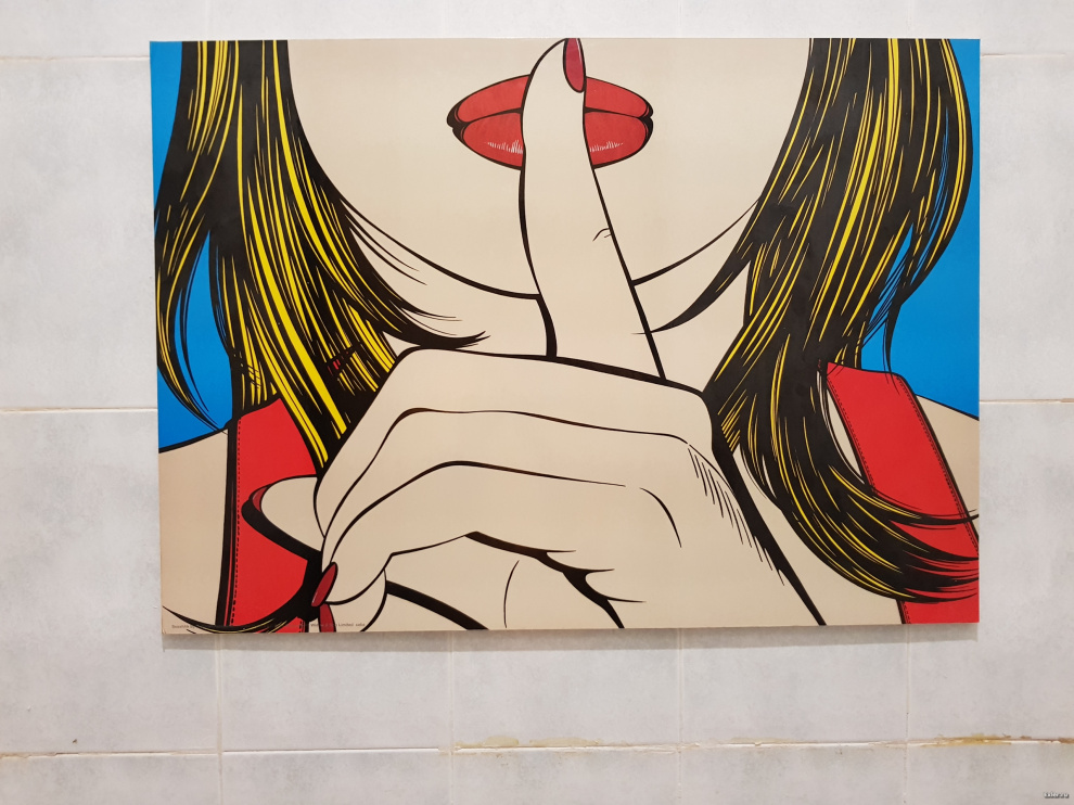 Это картины британской художницы Deborah Azzopardi, их продают дешево в Икее и всякие отели и рестораны любят их покупать и вешать в разных неожиданных местах.