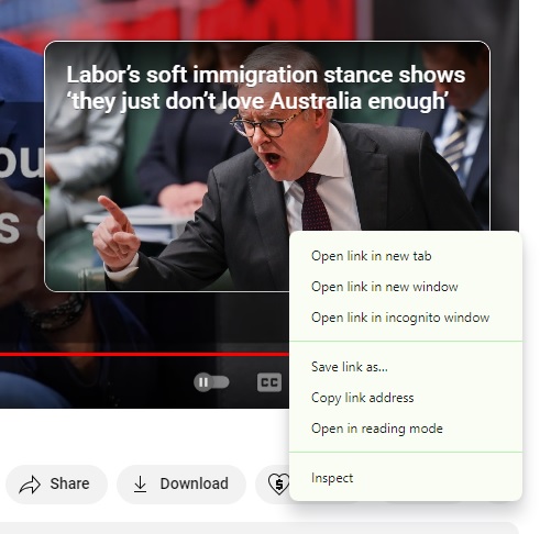 А, понял. Сначала жмём правой на орущего мужика, открывается совсем другое меню: скопировать код, решить проблемы, всякая байда. Не обращая на это внимания и не закрывая это меню, жмём ВТОРОЙ раз. И вот тогда-то!.. Получилось.
