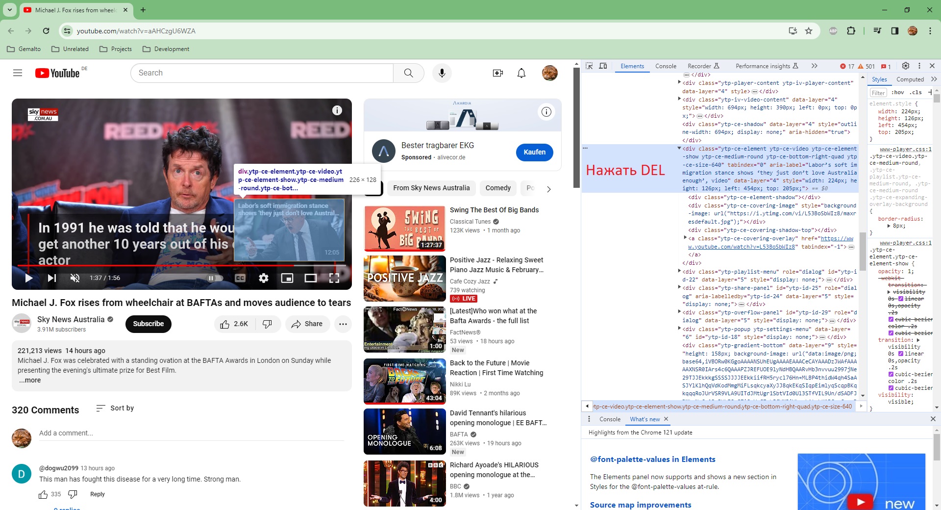 Дык я на сайте Ютуба это и тестировал. ХЗ чего там нажимать надо: del на клавиатуре