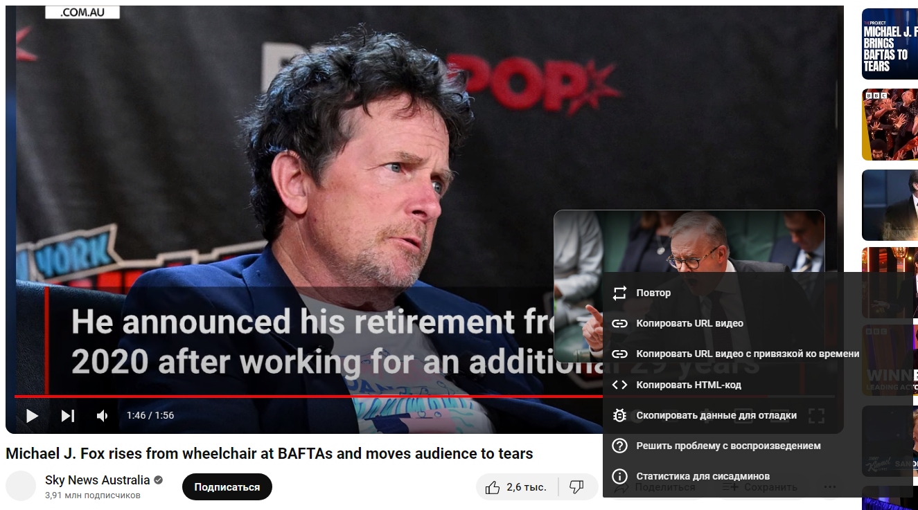 На вручении премии BAFTA 2024 актера Майкла Дж. Фокса стоя приветствовали овацией.