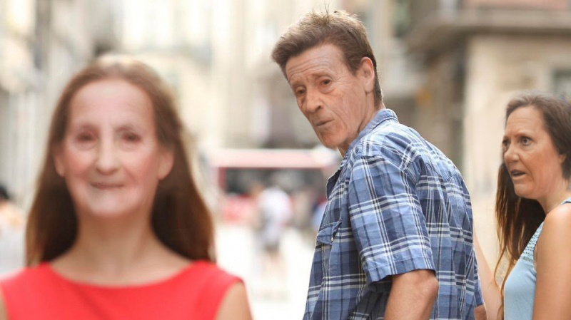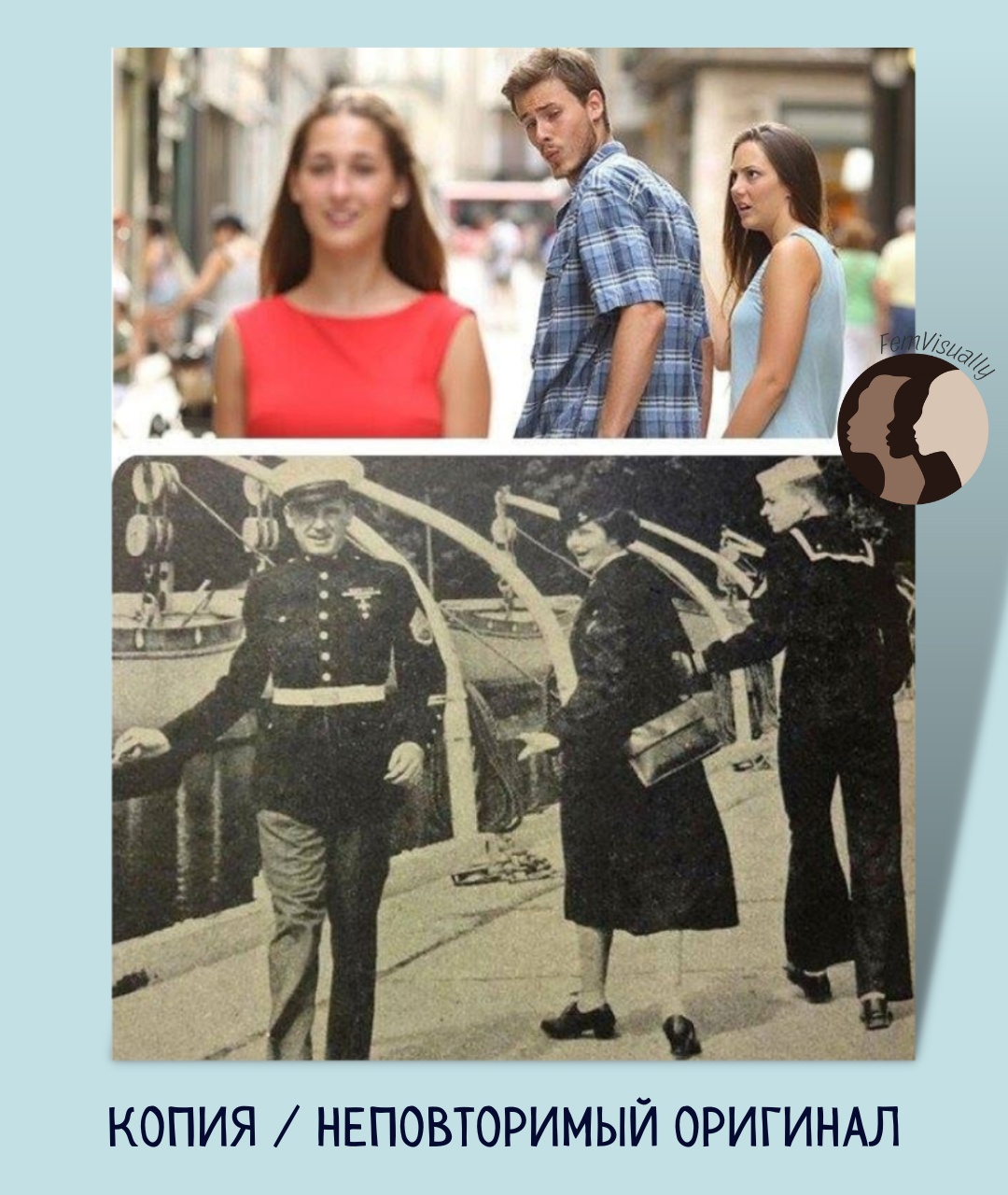 Кстати, судя по информации самого Antonio Guillem на его сайте (страница на испанском), настоящие имена "неверного бойфренда" и "его подружки" - Con Dario и Cuando Carla. Там же есть видео.
