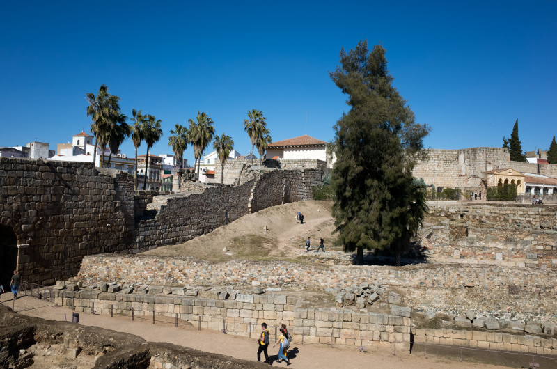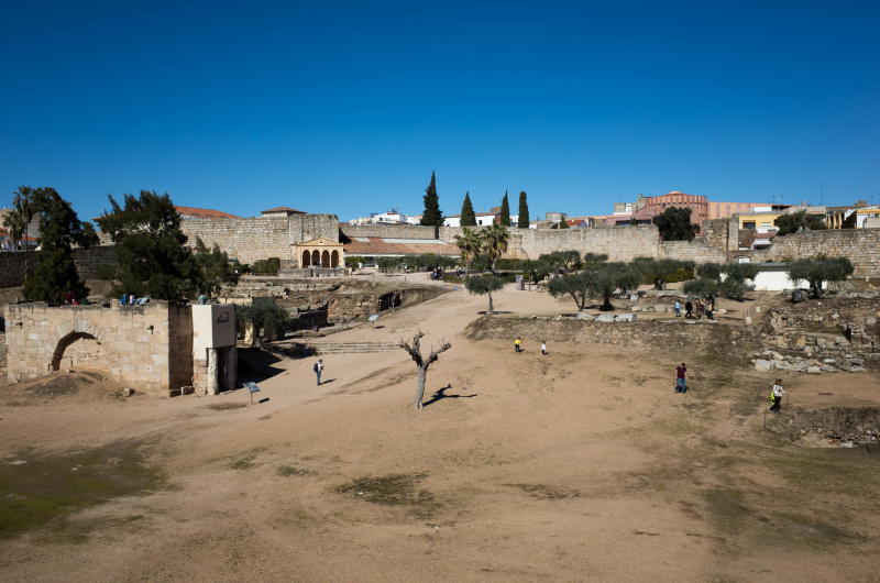 Это вход на основную территорию, где находятся римский амфитеатр, римский театр и всякие другие раскопки. Кстати, первое поселение на месте Мериды возникло еще в 25 году до н.э. Поселение основал император Август, город был предназначен для вышедших в отставку римских солдат. Ну и назвали поселение Эмерита Аугуста - в честь императора.