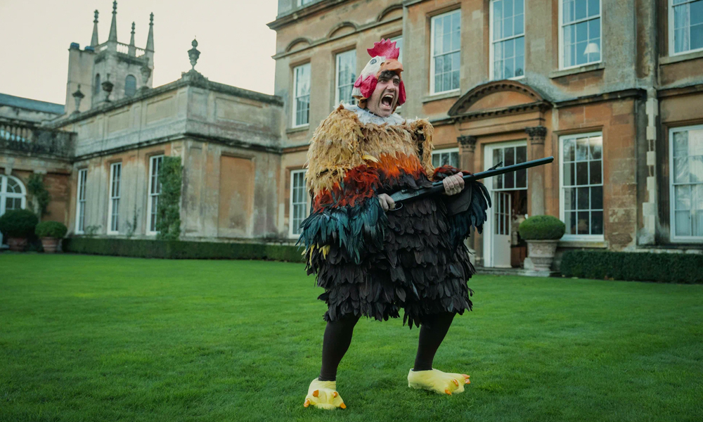 Мне вспоминается фильм "Белые цыпочки". Там в переодетого в белую женщину Марлона Вайнса на пляже прилетел футбольный мяч, он вскочил на ноги и заорал: