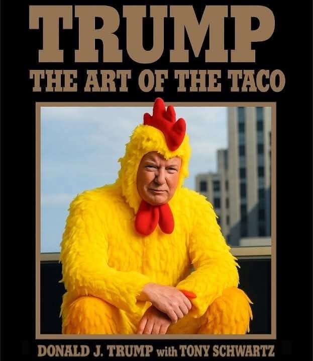 Корреспондентка CNBC сказала Трампу, что обозреватель Financial Times придумал для него термин TACO: "Trump Always Chickens Out" ("Трамп всегда струсит") - за всю эту идиотскую фигню с тарифами. Трамп ответил, что он на самом деле гений, потому что он всех тарифами победил, а еще недавно страна была мертвой и безжизненной, а теперь все цветет и пахнет. И что вопрос этот - прям мерзкий-премерзкий.