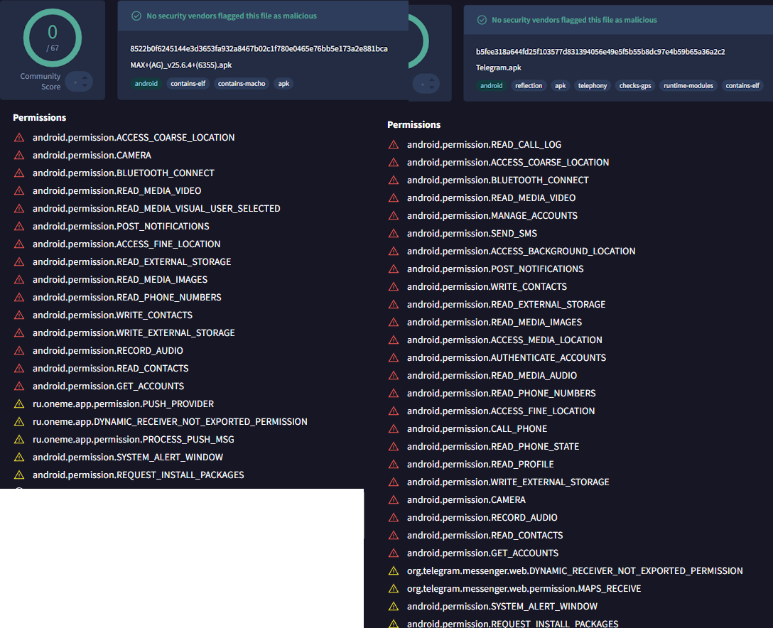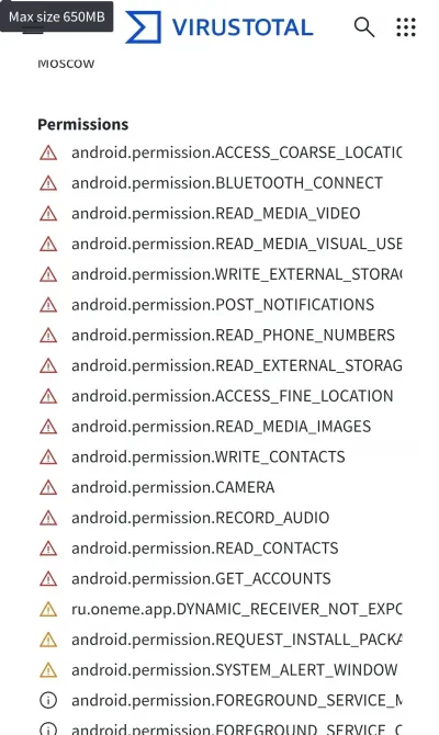 «Давайте к делу: я проверил приложение Max через VirusTotal, и результаты настораживают. Мессенджер запрашивает доступ к камере, микрофону, контактам, геолокации и даже вашим файлам, но это и так понятно что порой мессенджеру нужны такие разрешения если вы хотите отправить всё, но там есть доступ к bluetooth, локации, ТОЧНОМУ МЕСТОПОЛОЖЕНИЮ. Зачем обычному приложению для чатов столько разрешений? Это вызывает вопросы: что Max делает с такими возможностями и почему ему нужно так много данных?
