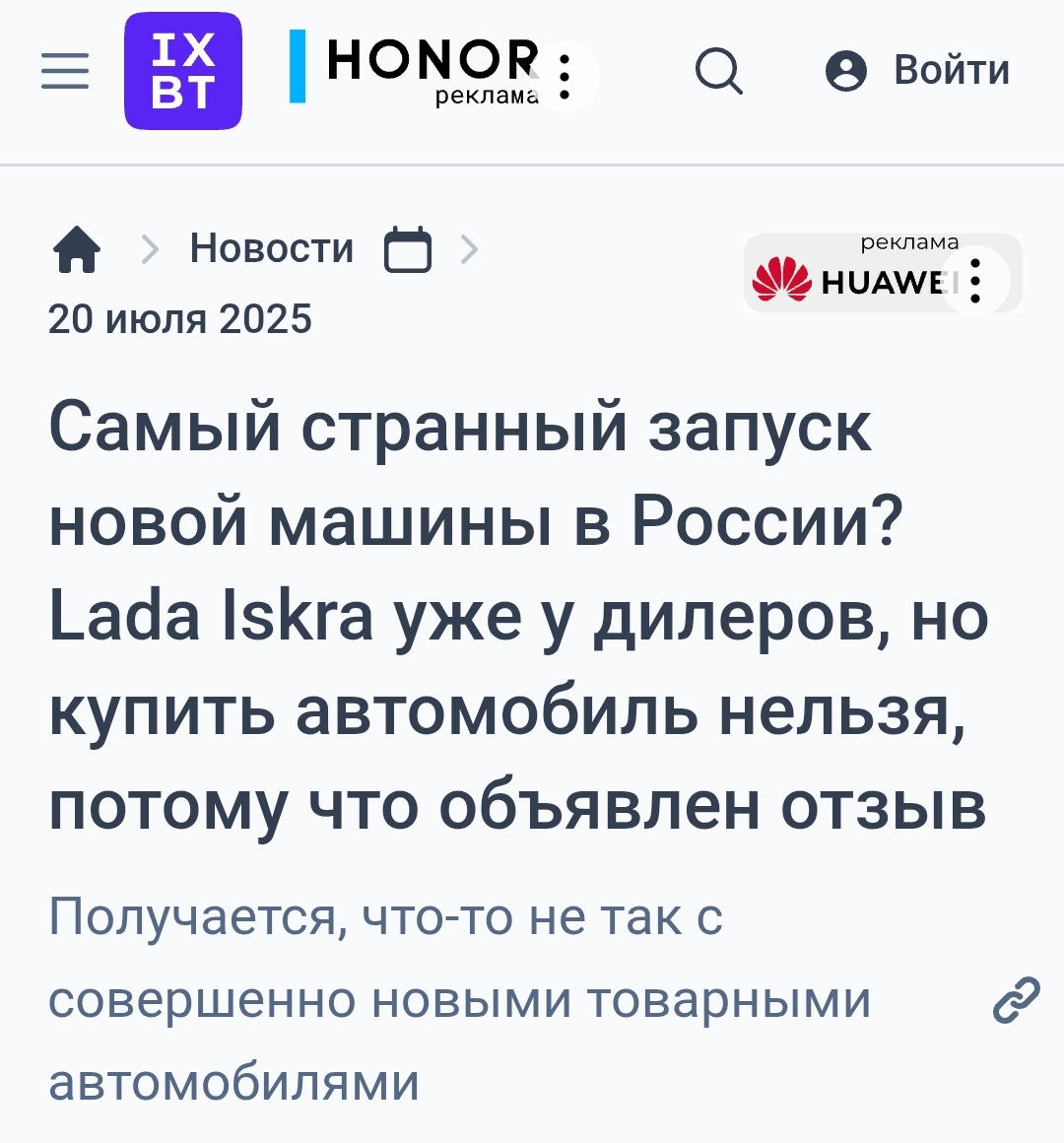 Кстати, полностью раскупленная на данный момент (по сообщениям ру сми) первая партия Лада Искра - растворилась бесследно. Эти машины и их владельцев не могут найти.