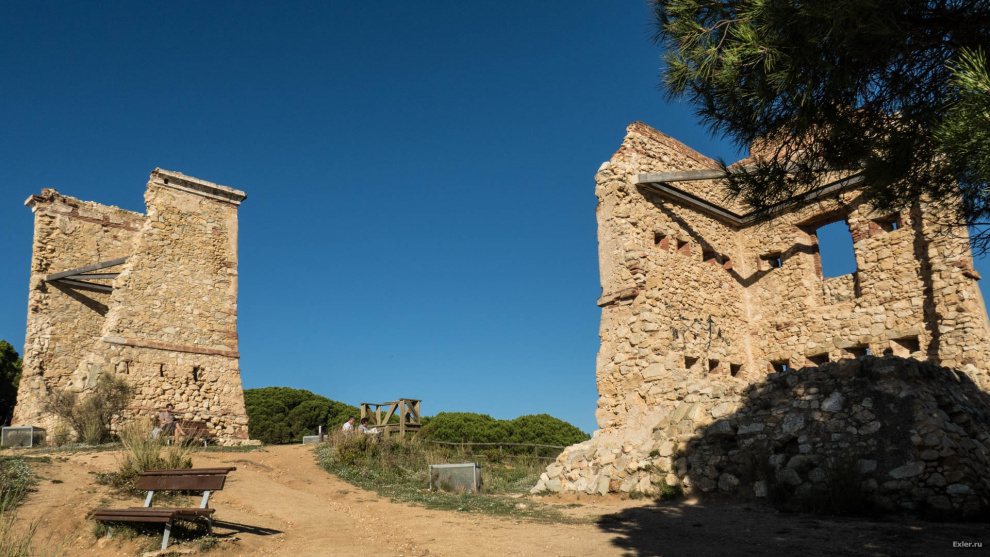 Место совершенно балдежное: на вершине холма небольшая полянка в окружении сосен. Там стоят полуразрушенные башенки: они в свое время они использовались для наблюдений и передачи сигналов на другие такие башни.