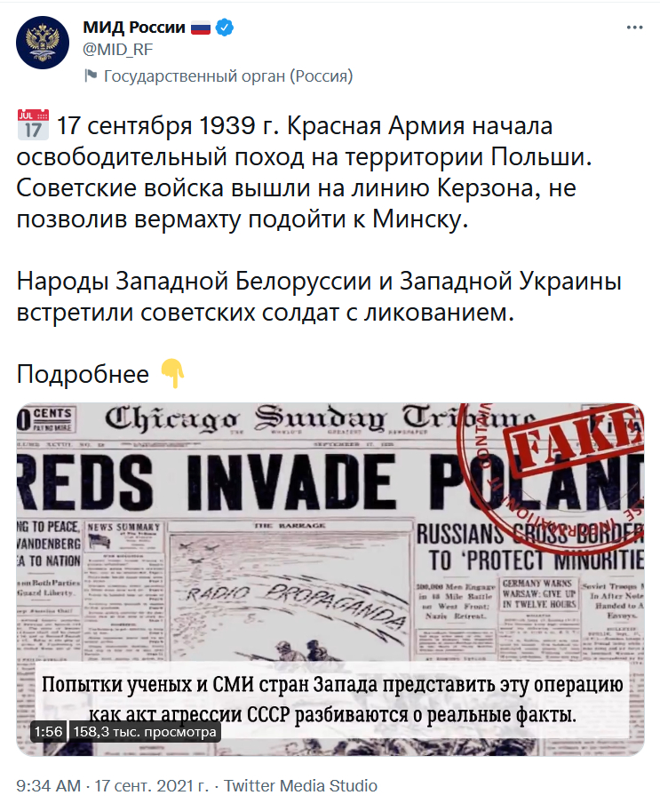 Upd: В издании DW статья на эту тему "Удар в спину: как СССР напал на Польшу" - для тех, кто, как и эти упоротые в МИДе, историю не знает.