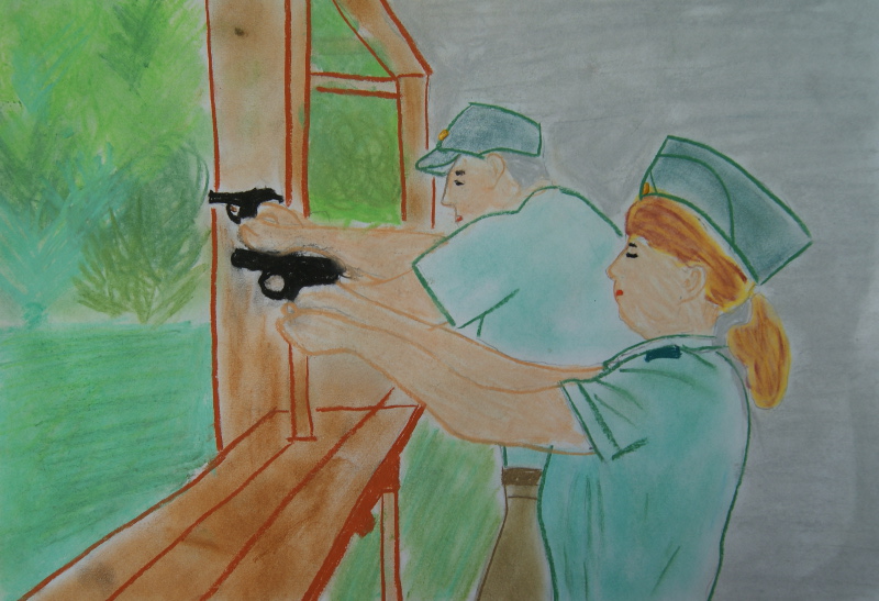 - Судебные приставы сдают зачет по стрельбе. Автор рисунка: Диана Сутункова (13л)