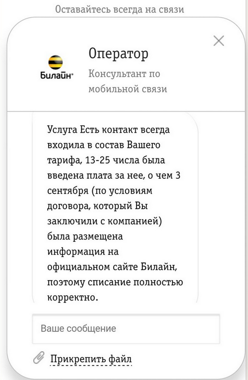 Однажды приходит уведомление, что на счету не хватает денег на очередной платёж. Требуют на 50 рублей больше, чем тариф. Интернет отключен, есть выход только на сайт билайна, т.е. заплатить онлайн с карты нельзя, потому что страница подтверждения оплаты (где надо вводить код подтверждения, присланный по СМС), не является частью сайта билайна.