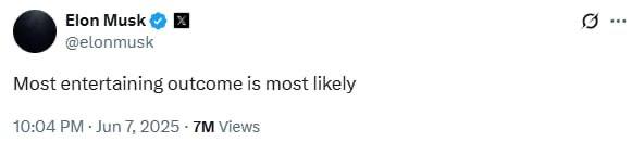 Ага, а еще Путин завтра чихнет и мир с Украиной заключит. Фантазии такие фантастичные. Говорю как человек, который согласен с от силы 30% того, что Маск делает