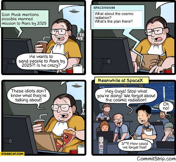 Так вот, а когда супермодели, их мамы и папы все перетраханы, Эверест из кокса покорен, собственный остров в море из шампанского приелся, но энергии еще хоть отбавляй, начинает хотеться побыть богом, самому, пусть и опосредованно, понажимать на те невидимые рычажки и кнопки, которые движут эту вселенную, помимо уже открытых физических законов. И тут дело не в спасении своей страны (кстати, ЮАР Маску не слишком интересна), а в том, что интересно нажимать на кнопочки и видеть, как эти нажатия потом освещаются в СМИ. Ну вот как Civilization/Age of Empires, только вживую. В градостроительном симуляторе Симсити иногда игроки насылают своим виртуальным "подопечным" один катаклизм за другим, просто, чтобы почувствовать себя себя всемогущими богами, так и тут, только, повторюсь, вживую. И тут, что Трамп, что Маск одинаковы. Дел до судьб мира, США и человечества в целом им нет, им интересна самореализация, а к чему она приведет, их не очень интересует, это задача их окружения, вовремя их притормозить, если успеют.