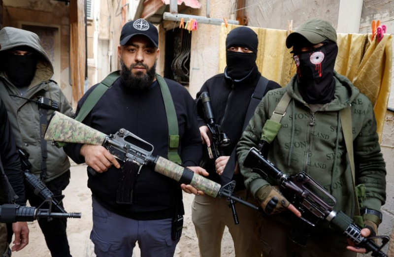 Вооруженные люди стоят во время похорон палестинца Рибхи Шалаби, убитого в столкновениях с силами Палестинской автономии, в лагере Дженин на Западном берегу реки Иордан, 10 декабря 2024 года