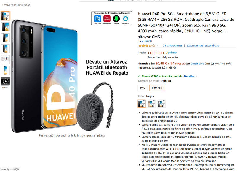 В испанском Amazon появились смартфоны  Huawei P40 и P40 Pro (я писал об их презентации).