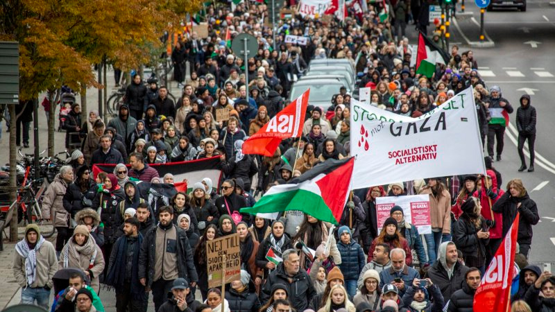 На RG.ru (может и где то еще) статья "В Мадриде прошла многотысячная акция в поддержку Палестины" а в картинках "Акции поддержки по всему миру" и под этой картинкой "Акция поддержки Палестины в Швеции".