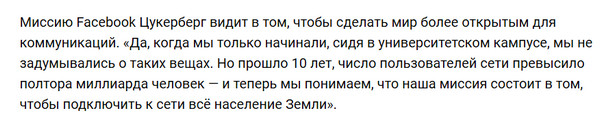 Не перестаю удивляться таким людям. Фб - такой же инструмент как жж, вк, одноглазники и тд. Так случается, что интересующий контент располагается один в однос, другой, в другом месте. И что теперь из личной неприязни к цукербергу не читать то, что мне интересно в фб? Глупость какая.