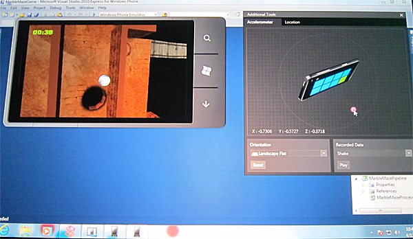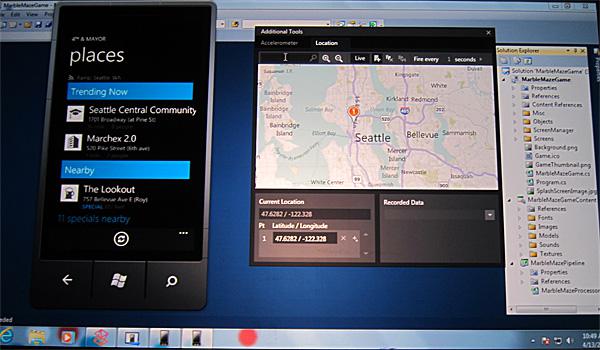 Показали интересные средства эмуляции работы телефона в Visual Studio: можно эмулировать изменение положения в пространстве, навигацию (задавать местоположение, движение и так далее).